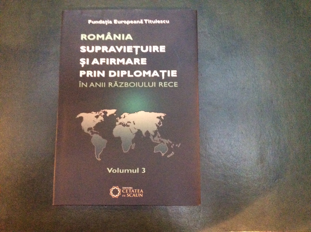 Ieri, a avut loc la Fundatia Titulescu lansarea volumului „România. Supraviețuire și afirmare prin Diplomație in anii Războiului Rece”, volum coordonat de ambasadorul Nicolae Ecobescu. Lucrarea conține comunicări, articole, studii, documente de arhiva, fiind al treilea volum realizat in cadrul Fundatiei Titulescu pe aceasta tema. Numeroase documente, legate de momente importante ale vieții internaționale post-belice, sunt publicate pentru prima data.